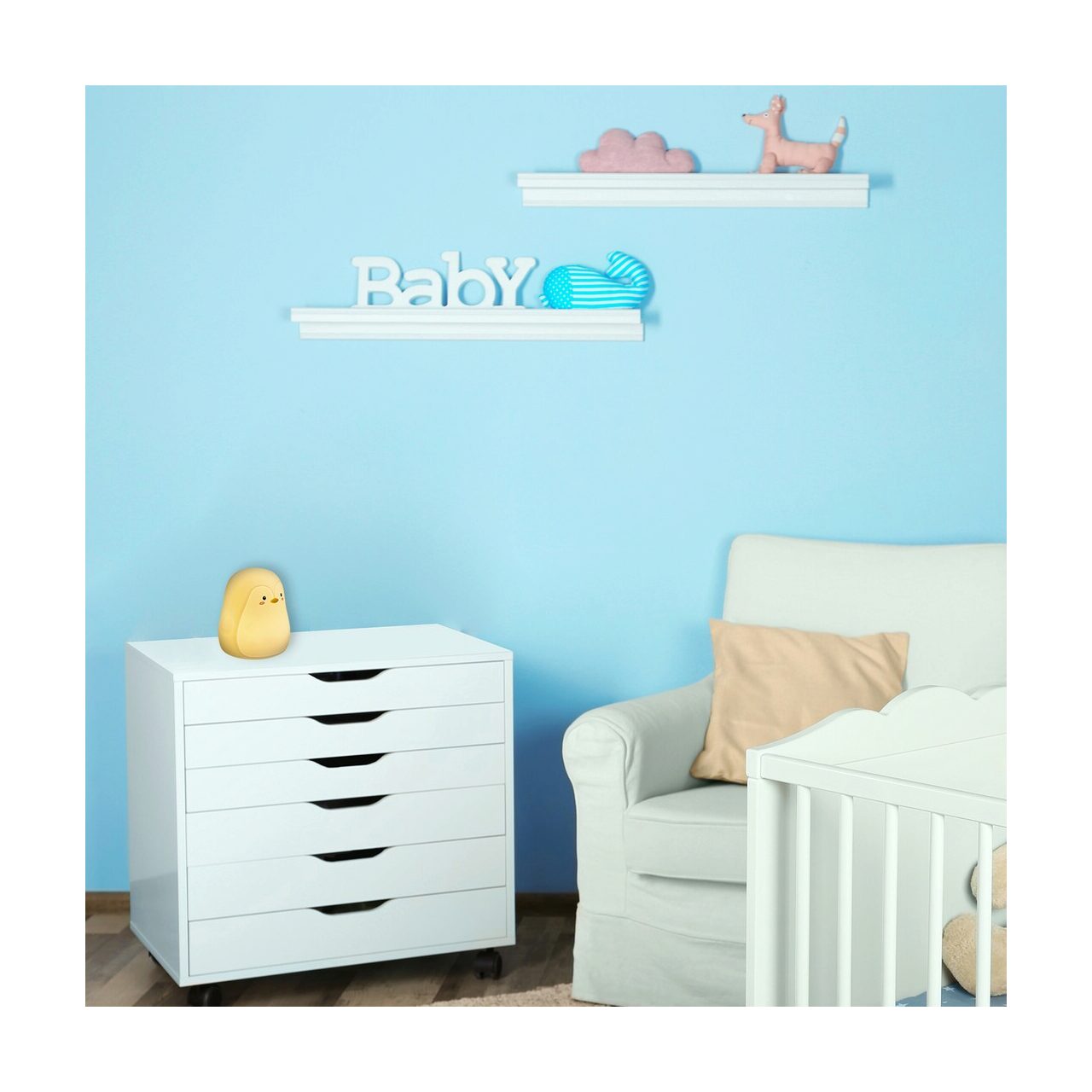 Lampa decorativă, moale, Baloo este realizată din silicon și poate fi accesoriul preferat pentru camera copiilor. Figurina sub formă de pinguin poate fi așezată pe noptieră sau pe un raft, lumina albă, caldă asigurând o atmosferă plăcută asigură pentru cei mici. Dacă trebuie să intrăm în camera copiilor pe timpul nopții, ne va ajuta și pe noi datorită iluminatului discret nocturn. Baloo este dotat cu acumulatori Li-ion, astfel că poate fi deplasat oriunde. Modelul de culoare albă este prevăzut cu o sursă de lumină LED integrată, cu o putere de 0,4 W, luminozitate 29 lumeni, temperatura de culoare 3000 K, iar datorită funcției RGB, lampa Baloo poate lumina în roșu, verde și albastru. Dimensiunile lămpii decorative cu comutator „tactil” sunt: înălțime 160 mm, diametru 111 mm.