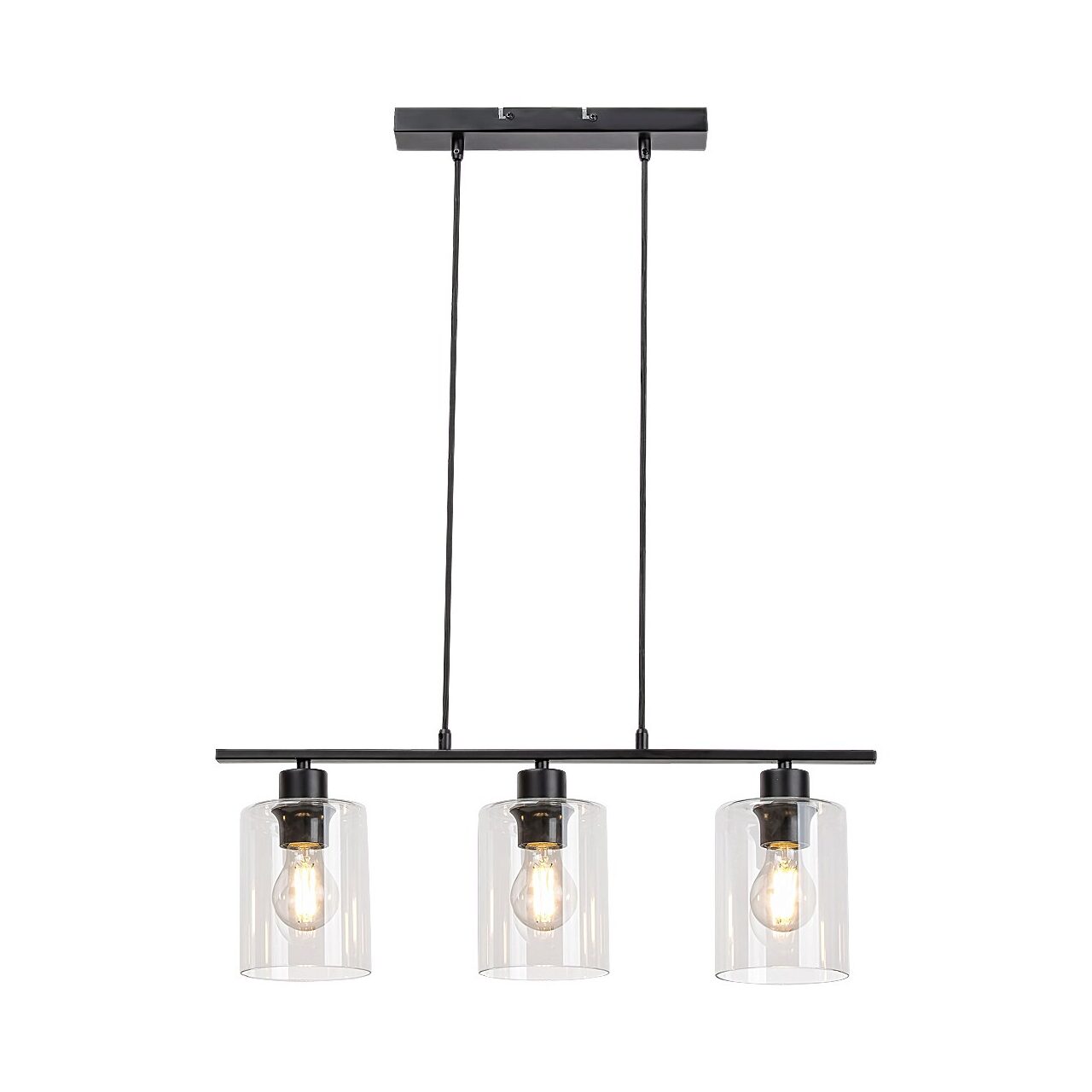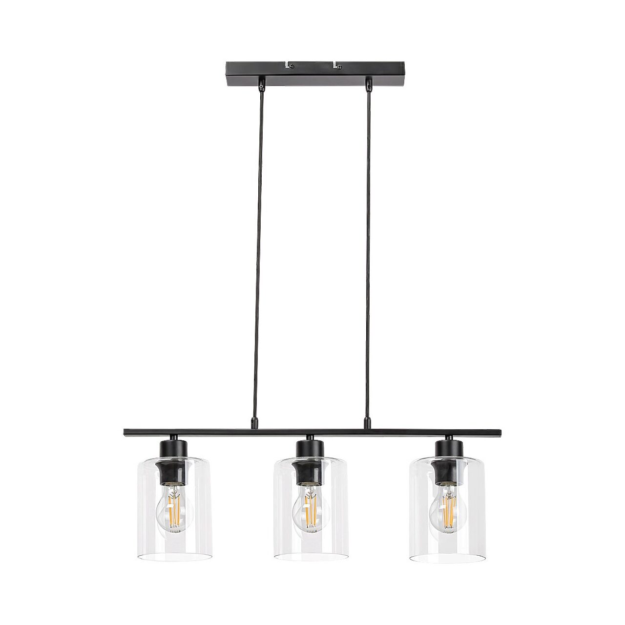 Reprezentând stilul industrial, pandantivul Miroslaw cu 3 becuri va fi o piesă de mobilier plină de caracter în livingul, dormitorul sau biroul Dvs. Corpul de metal de culoare negru mat este complimentat de trei abajururi de sticlă cilindrice, transparente, care ne permit să observăm sursa luminoasă din interior. Lampa suspendată poate fi fixat pe tavan cu ajutorul unei baze decorative dreptunghiulare, alungite, care este conectată de tija care susține capetele lămpii de două cabluri din material textil. Miroslaw poate fi folosită cu trei becuri, fiecare de până la 40W. Tipul soclului este E27. Dacă doriți un efect modern, iluminator, alegeți becuri cu lumină alb natural pentru această lampă. Dimensiunile lustrei Miroslaw sunt după cum urmează: lățime 600mm, distanța de la tavan 1.220mm, diametrul fiecărui abajur 120mm. Acest model se livrează fără surse luminoase.