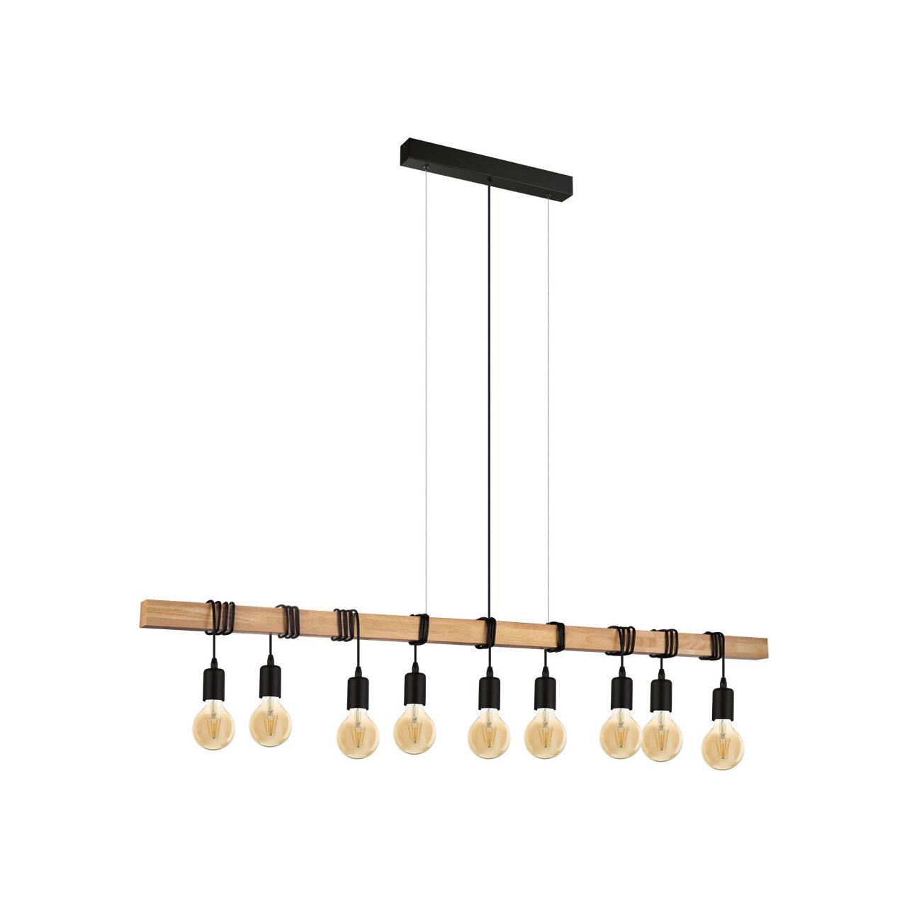 Lustra vintage EGLO TOWNSHEND 49744, E27 9X60W, Lemn, Maro, Negru