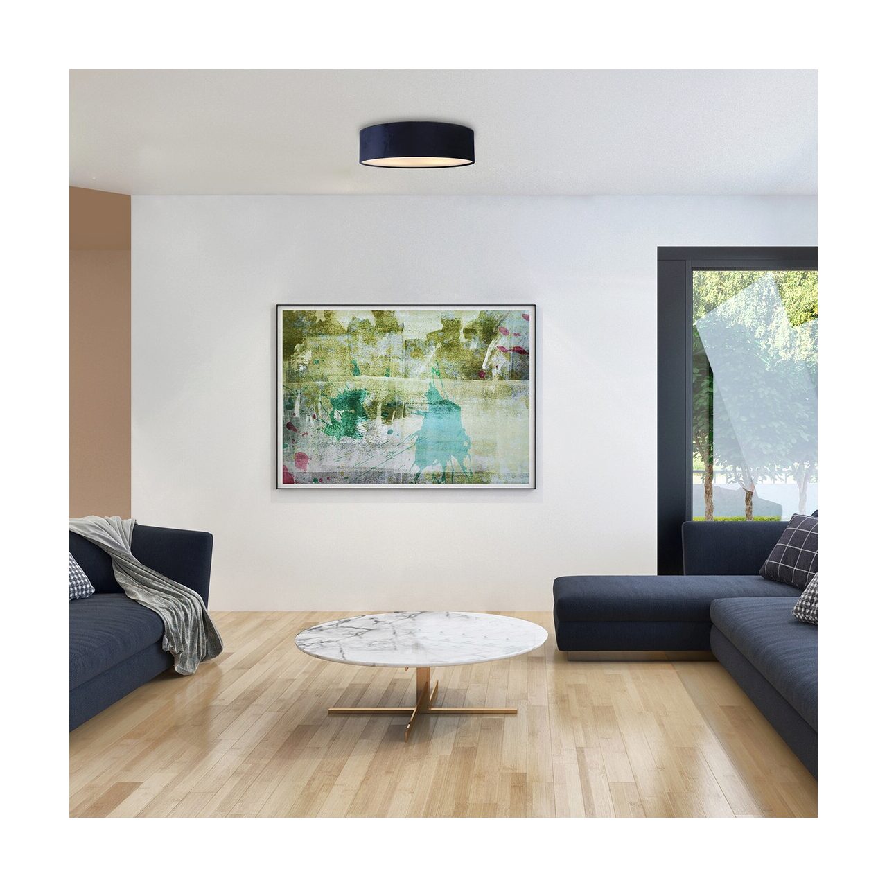Cu stilul său modern, plafoniera Aldona va fi o piesă practică de mobilier în livingul, dormitorul sau biroul Dvs. Modelul mare, rotund, este realizat într-o combinație de culori albastru cu alb, construit din metal și catifea frumoasă, ceea ce îi conferă un aspect delicat, elegant. Aldona poate fi folosită cu două becuri, fiecare de până la 10W, tip de soclu E27. În funcție de camera în care este instalată lampa și de efectul pe care doriți să-l obțineți, puteți alege surse de lumină alb cald sau natural. Dimensiunile plafonierei sunt următoarele: diametru 385mm, înălțime 100mm, diametru instalație 260mm. Acest model se livrează fără surse luminoase.